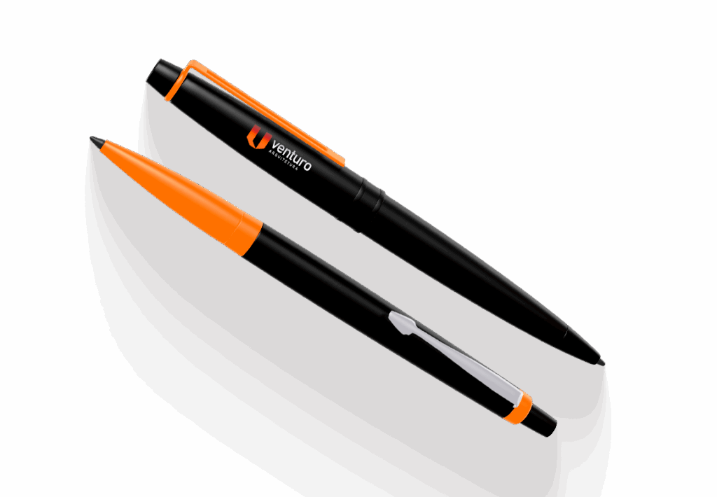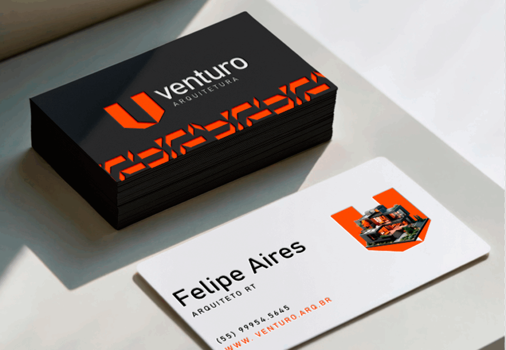 O laranja vibrante representa energia e inovação, enquanto o preto garante solidez e credibilidade.