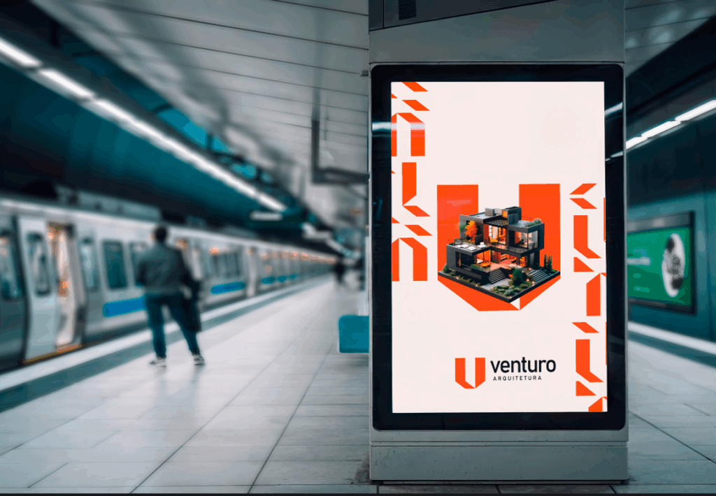 O ícone em forma de escudo geométrico transmite proteção, solidez e credibilidade, valores essenciais para uma empresa que carrega o nome Venturo (associado a futuro, avanço e visão). A forma angulada dá sensação de movimento e progresso, evitando rigidez excessiva e posicionando a marca como inovadora.